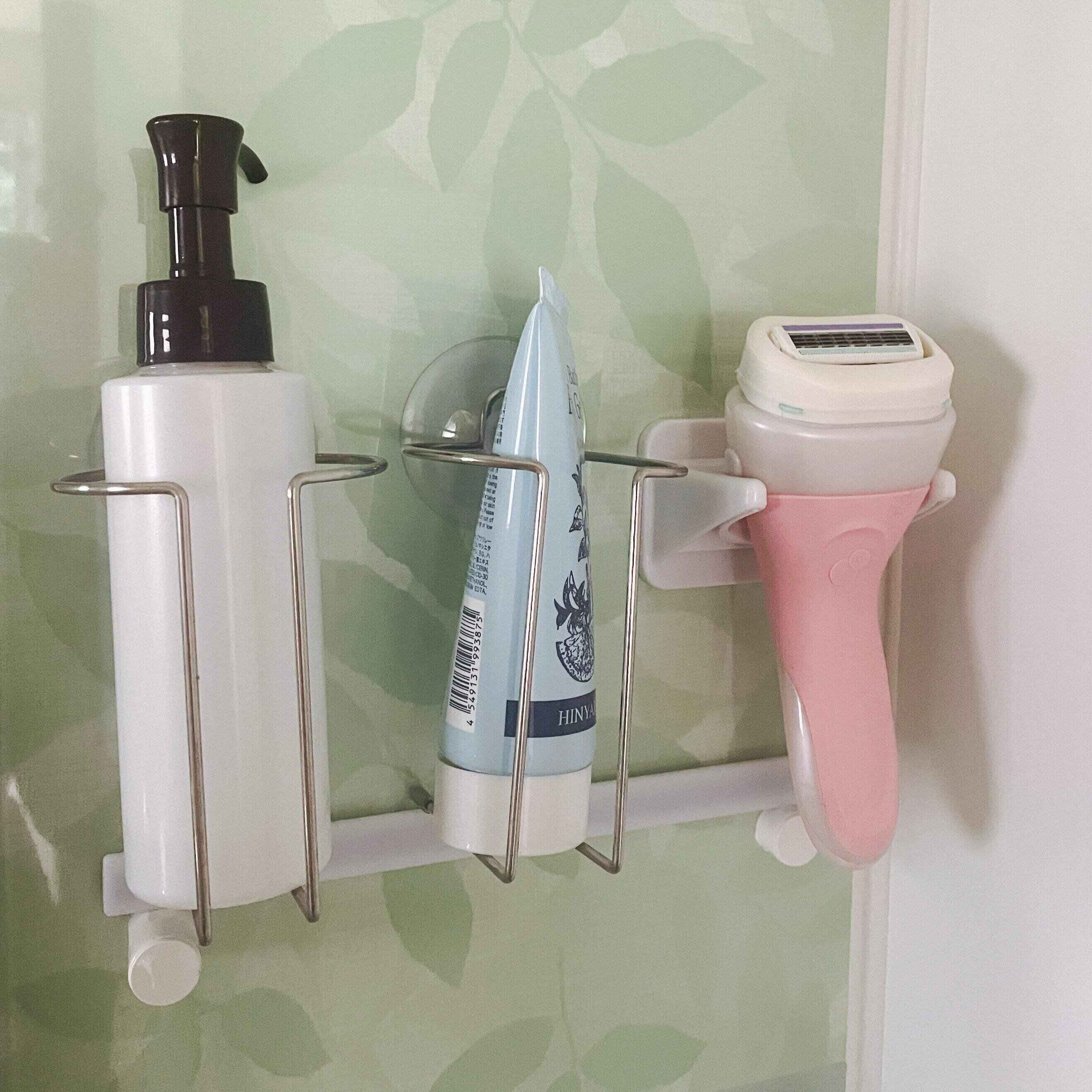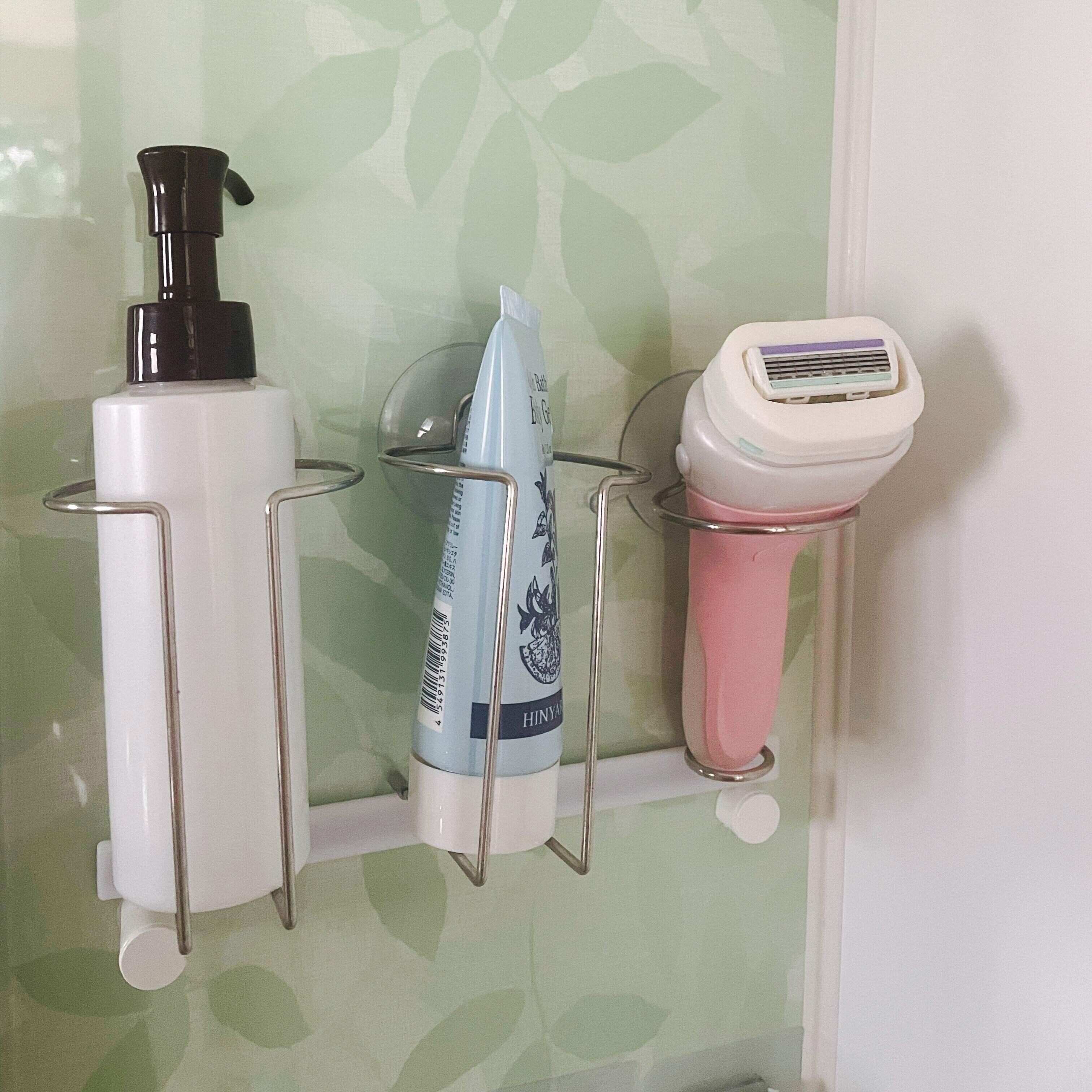 わが家ではソープつきシェーバーを愛用していますが、本体が大きいので浴室での保管場所に困っていて以前100円ショップで見つけたステンレス製のホルダーを使って差し込み収納をしています。しかし、底部分に持ち手の先を収納する際にとっても面倒で困っていたんです。