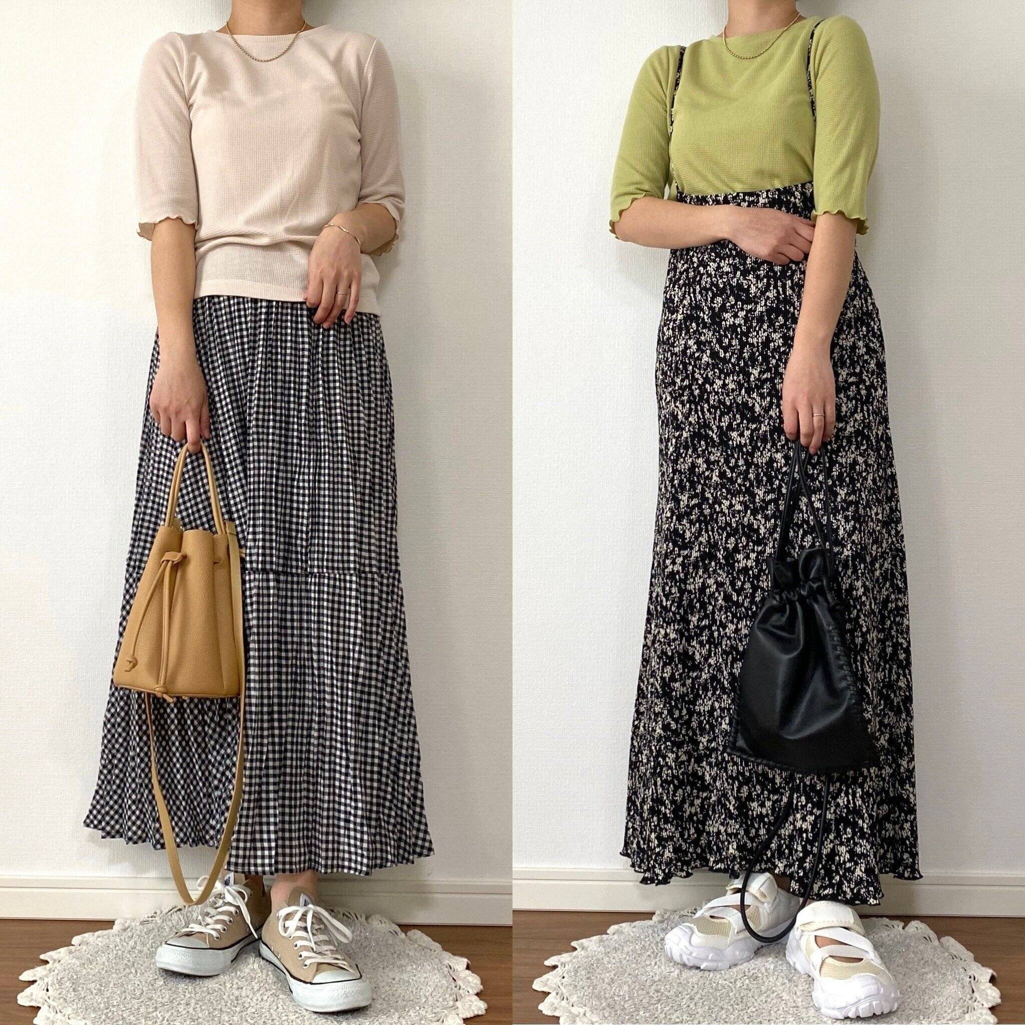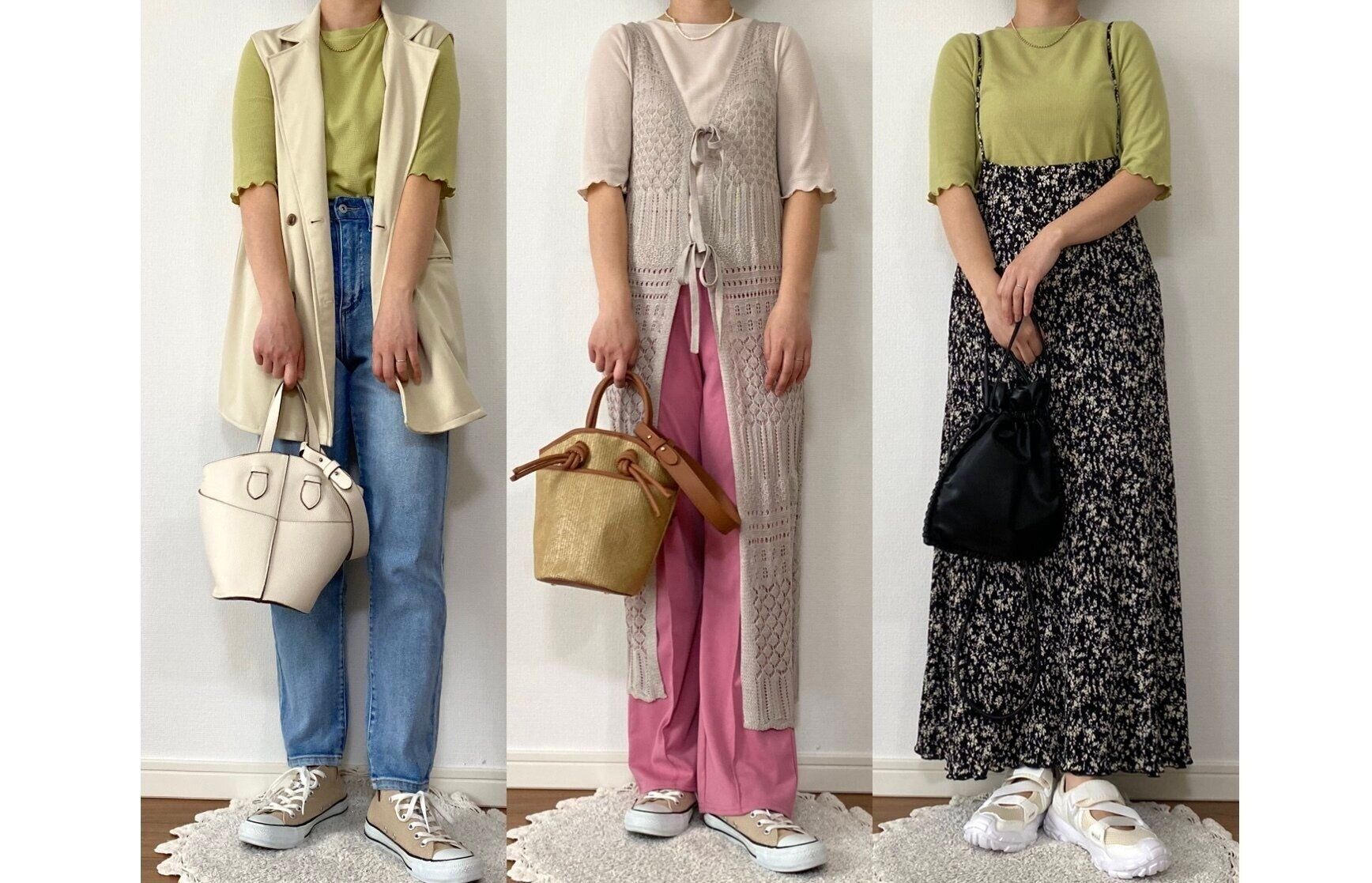 サロペットやキャミソールワンピースのインナーにも最適な生地の厚みです。ピスタチオカラーも派手すぎないのでコーデに取り入れやすくていいですね。