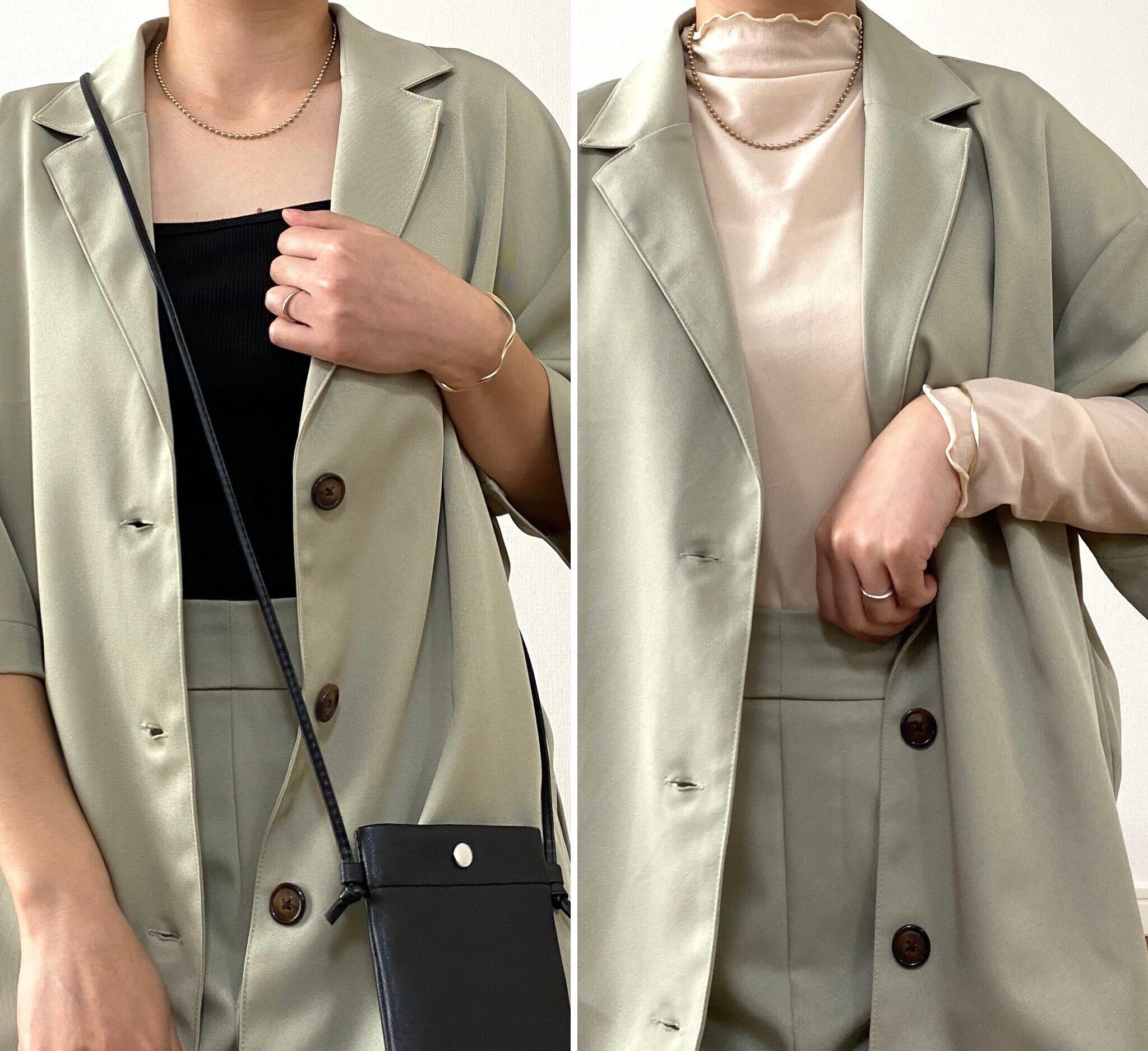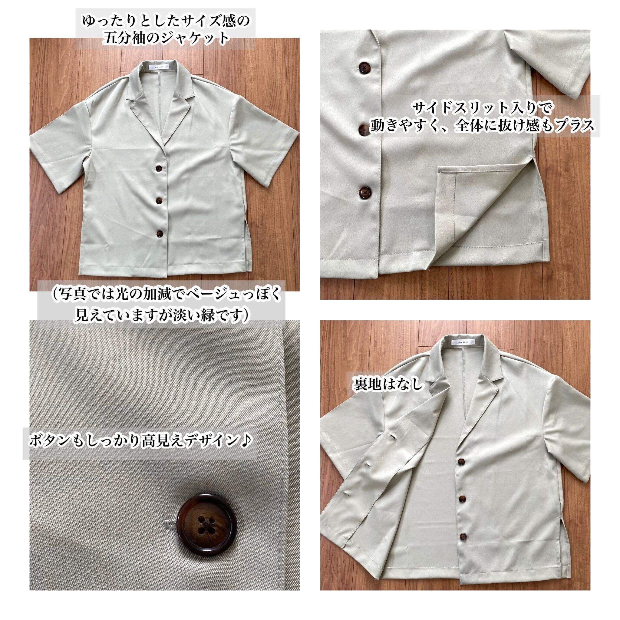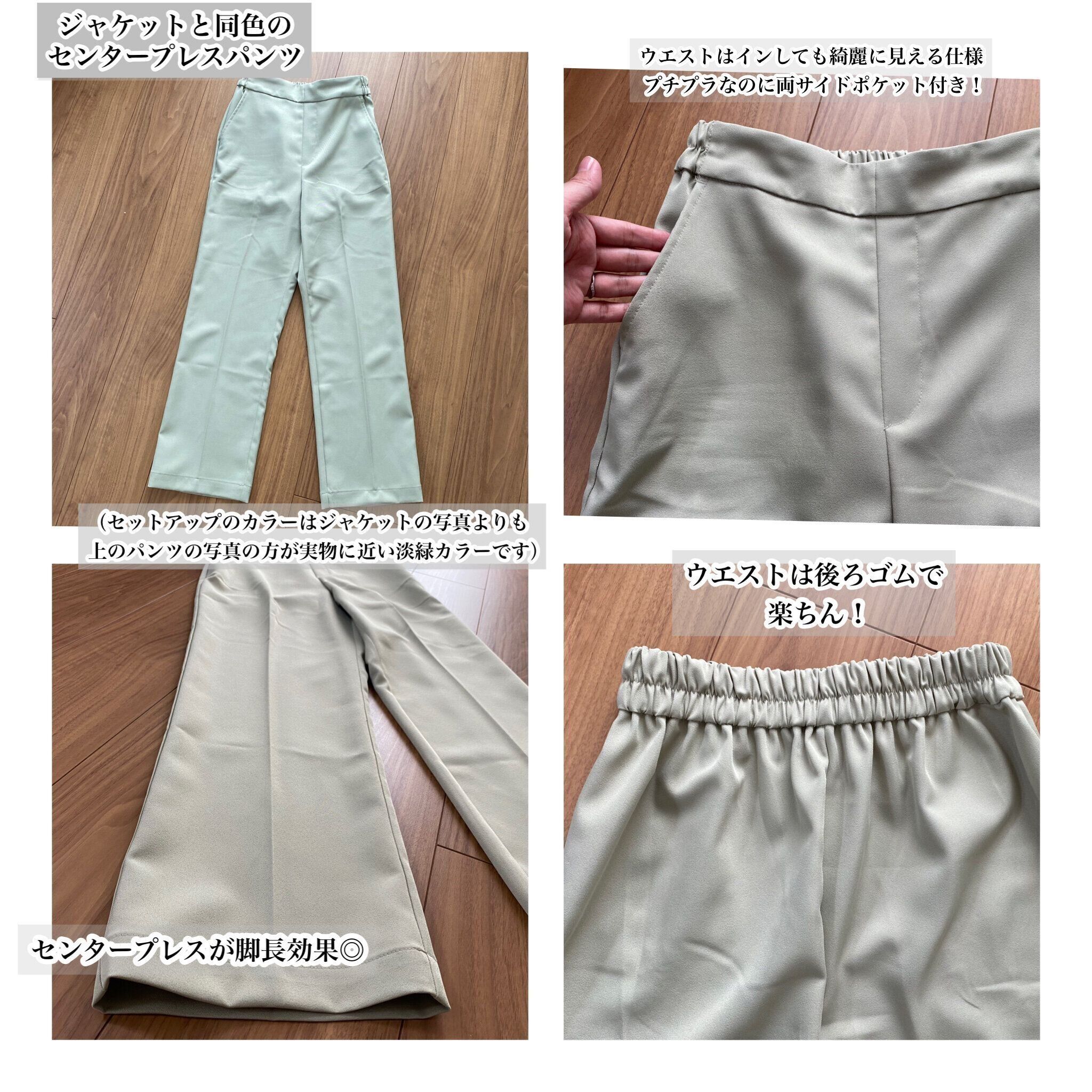 セットアップはこの写真だと光の加減でベージュのように見えてしまいますが淡い緑でトレンド感抜群の絶妙なカラーです!