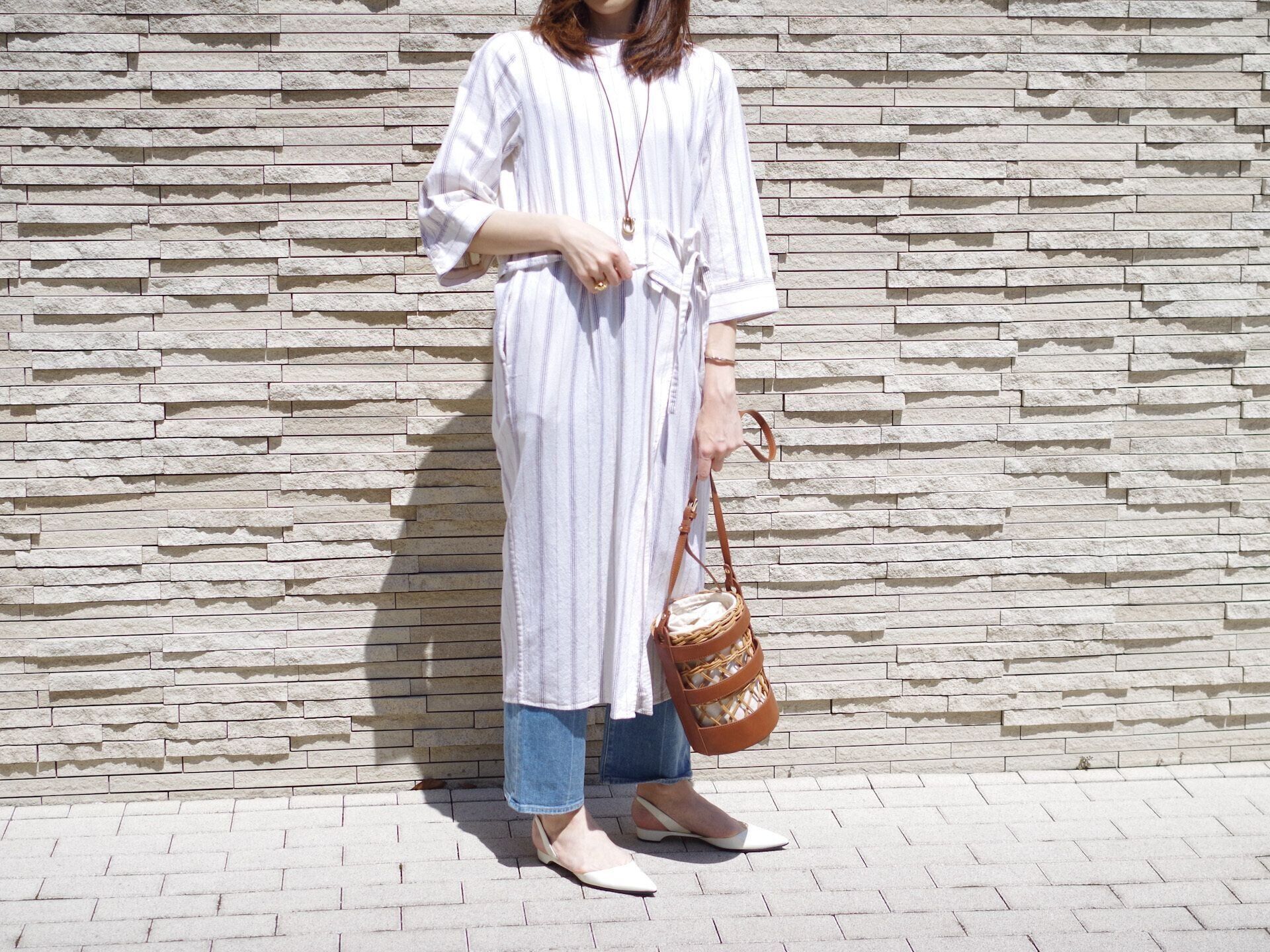ストライプ柄のワンピースは5年くらいずっと愛用していますが、トレンド問わず着やすく、デニムパンツにもぴったりなので挑戦してみてほしいデザインです!