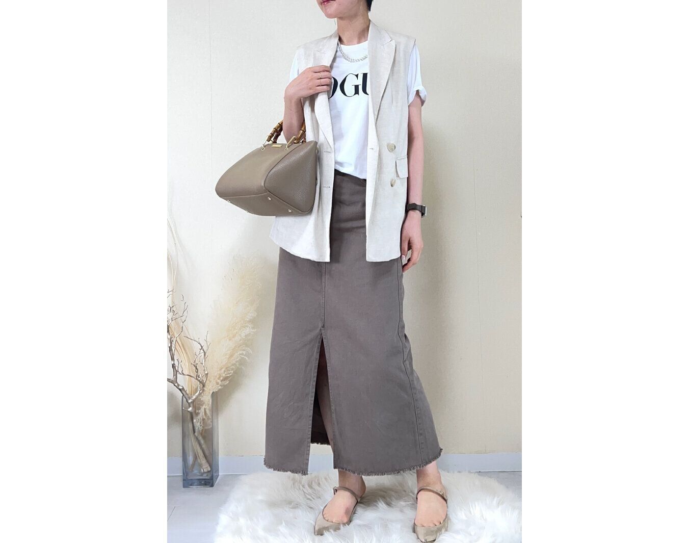 今年流行のジレをあわせれば即きれいめカジュアルに。