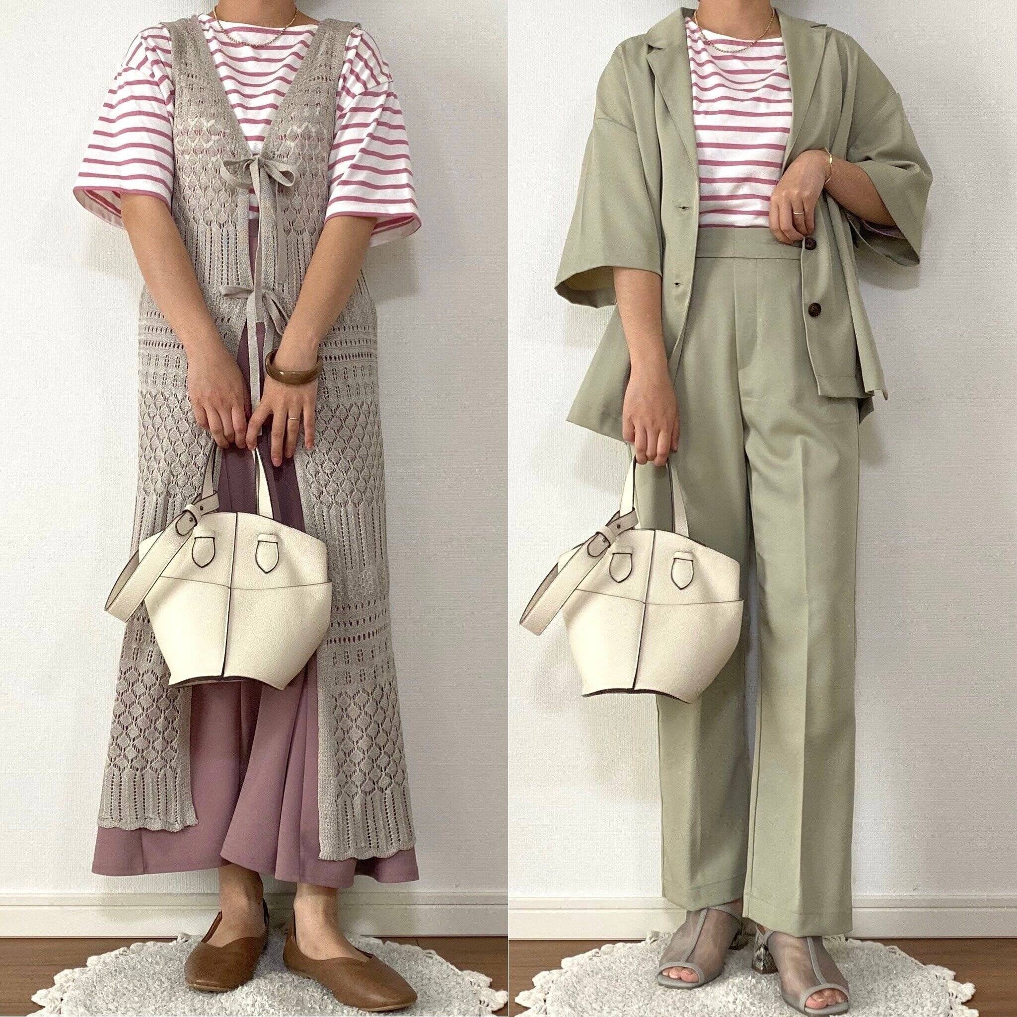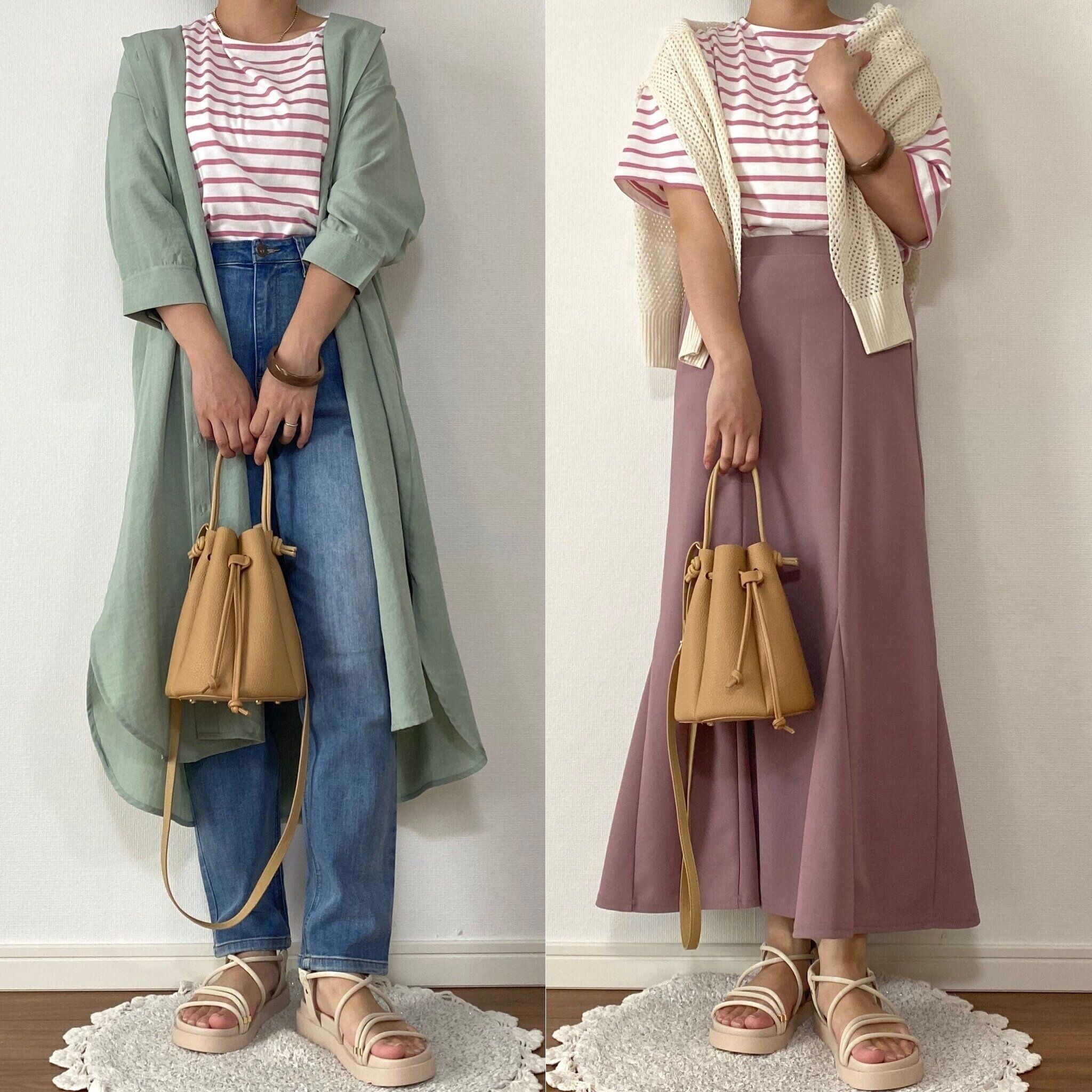 定番ボーダー柄はコーデもマンネリ化しやすいですが、いつもと違う新鮮カラーなら一味違って見えますね!