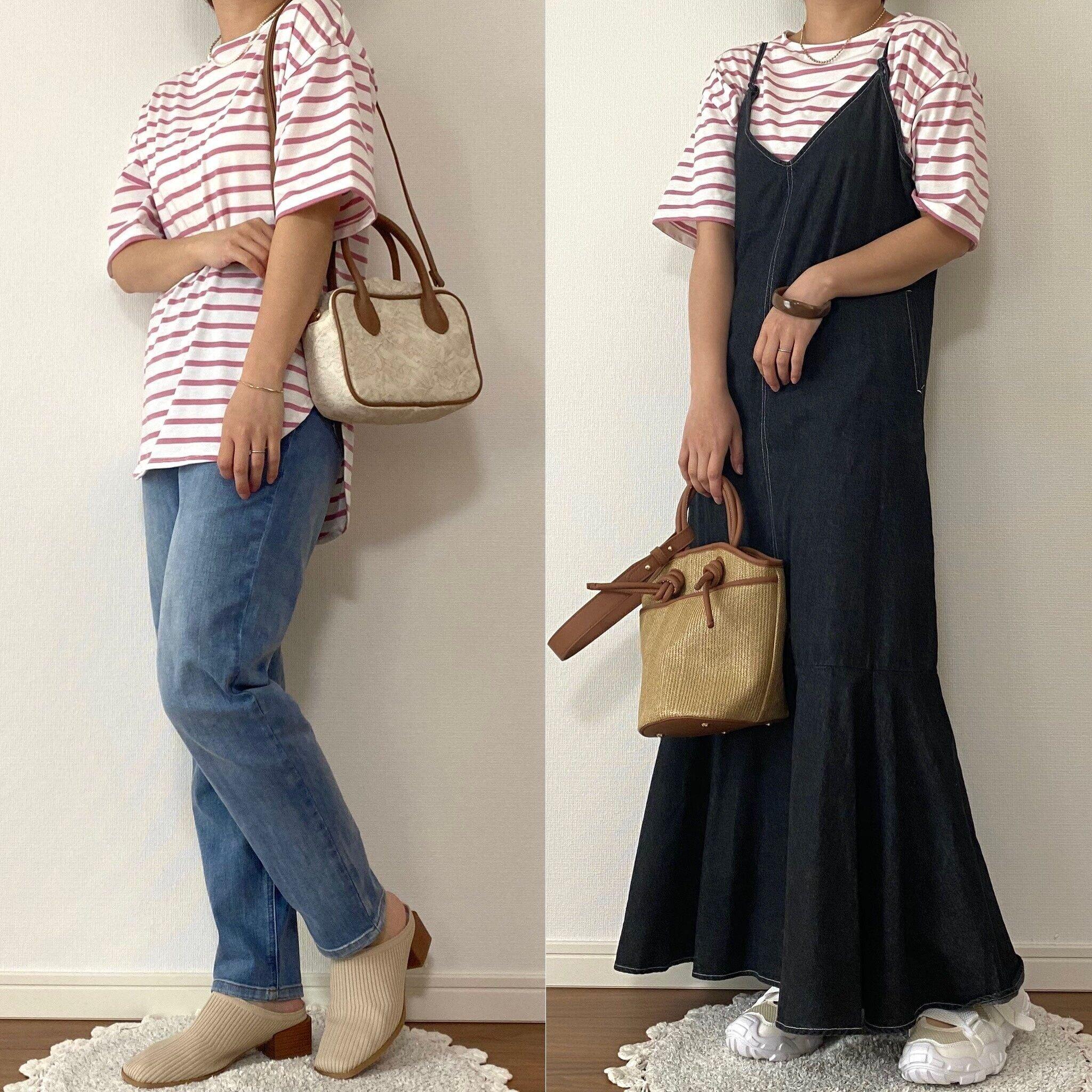 定番のデニムとの組み合わせもピンクボーダーならカジュアルな中にも可愛らしさをプラスできますね。
