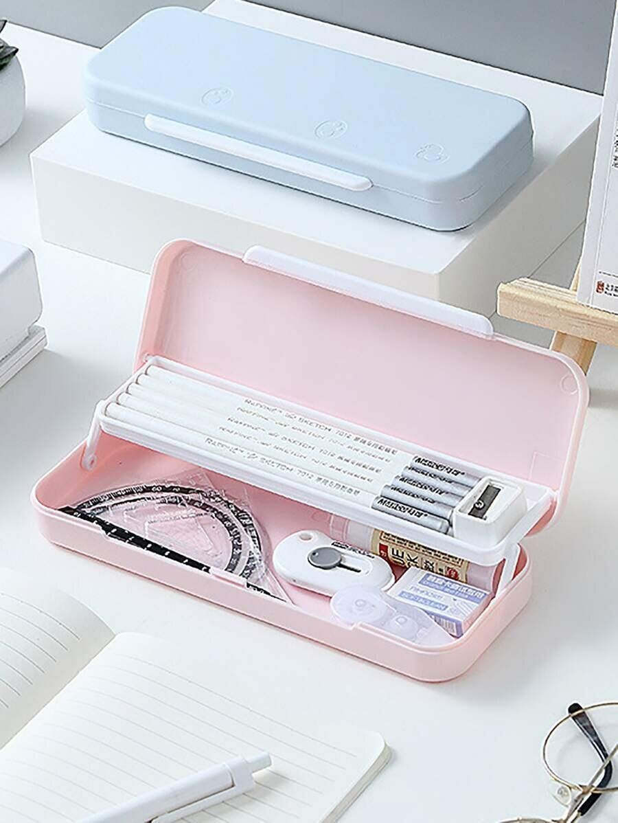 ブルー、ピンク、ホワイト、イエローの4色を展開したかわいらしい筆箱です。筆箱を開くと2段になっており、ペンや定規などを分けて収納できます。デザインだけでなく使いやすさにもこだわったアイテムです。