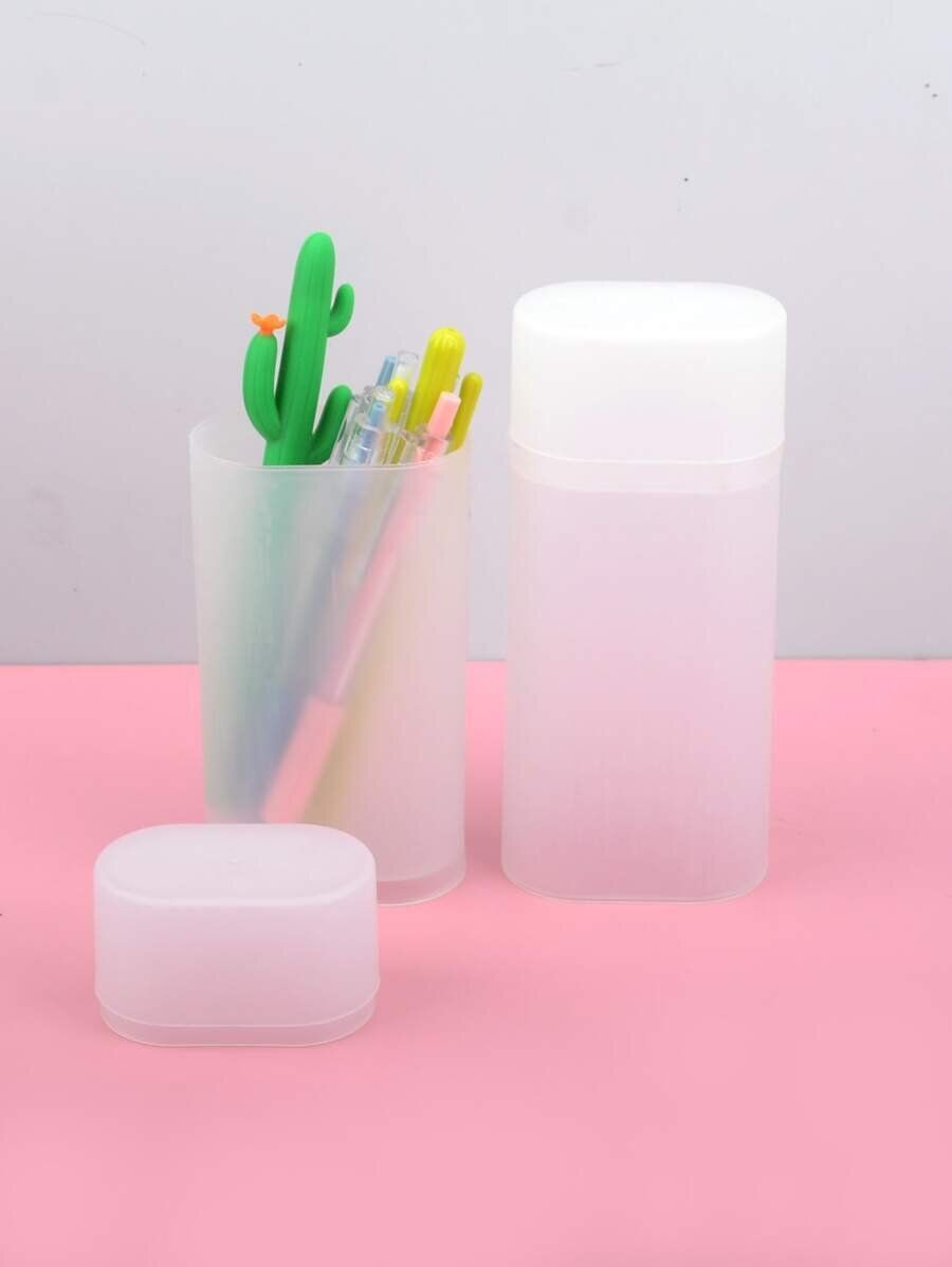 立てて使うクリアペンケースです。フタを外してそのままペンを取り出せるため、便利に使えるのが特徴。シンプルなデザインなので仕事場やお部屋など、どのインテリアにもなじみます。