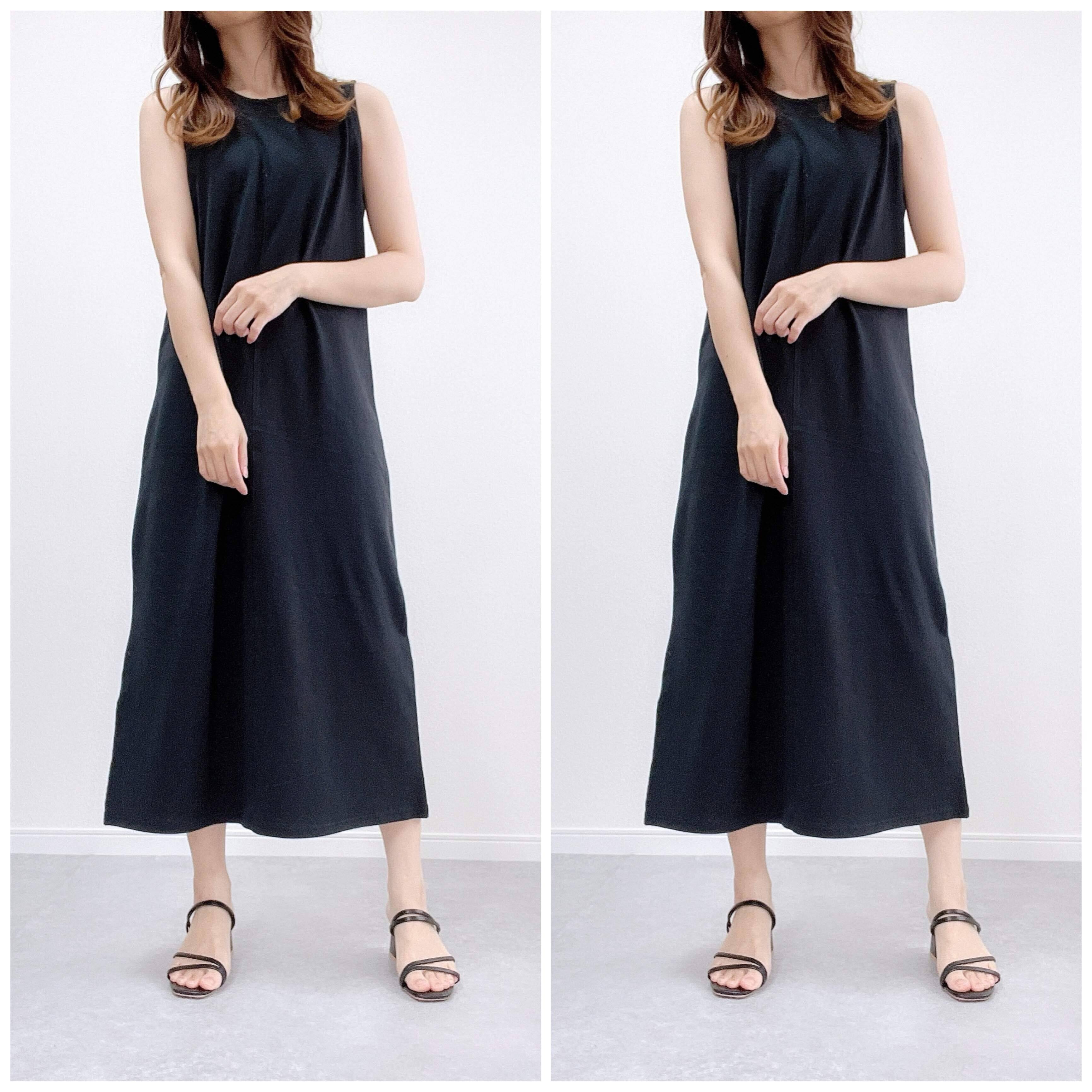 上のTシャツを脱げばノースリーブワンピースとして着ることができます。Tシャツを着ていた時とはまた雰囲気が変わって良いですね。脇の部分が少し開いていてインナーが見えるので中に着るものには気を付けた方が良いと思います。