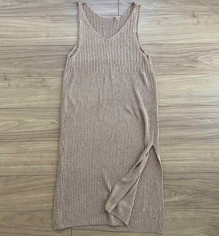 よく見ると胸下のリブ編みを境に編み目が切り替わっており、単調な編み目ではない工夫も高見えポイント。