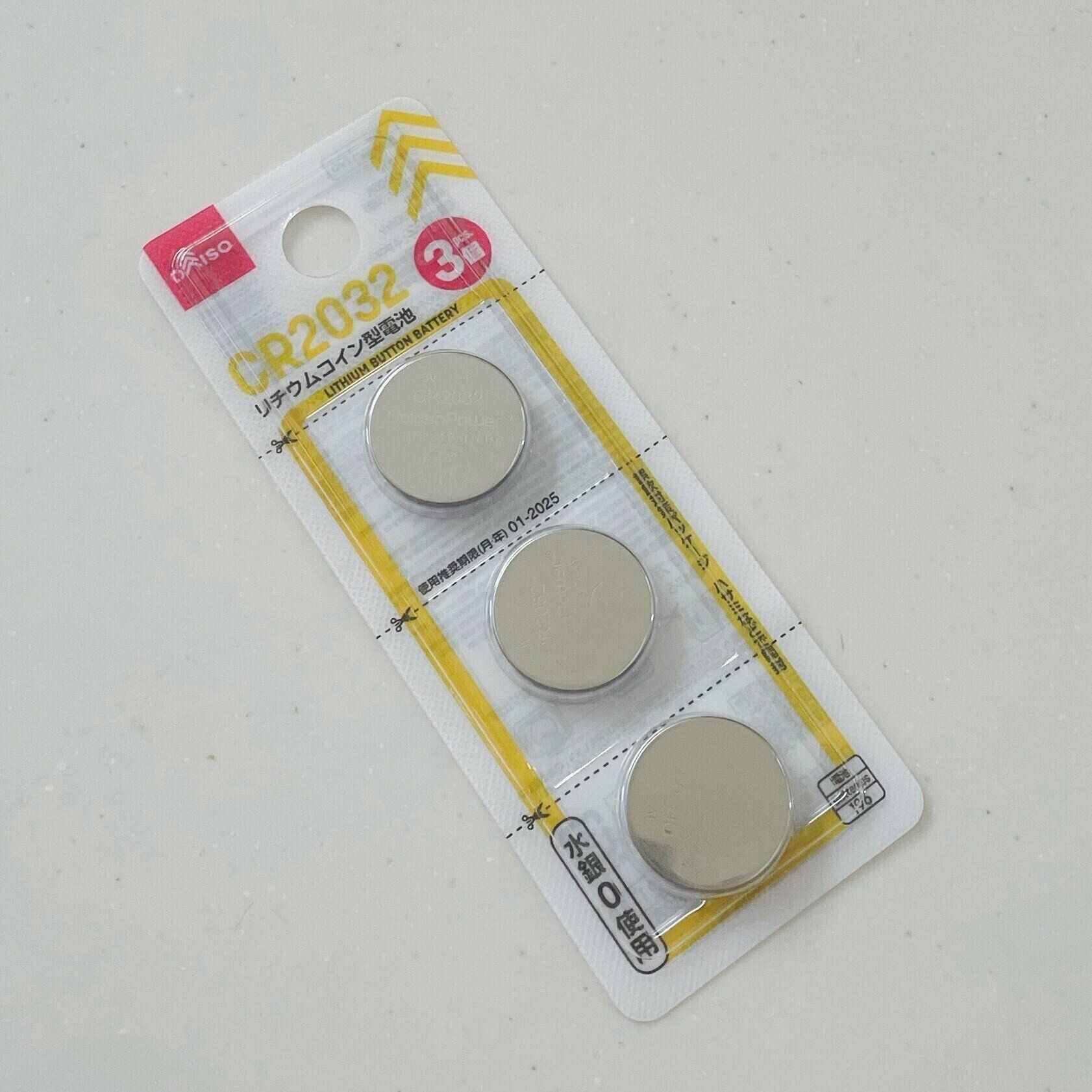 CR2032の電池が2個必要なのですが、安心してください!ダイソーで買えますよ。