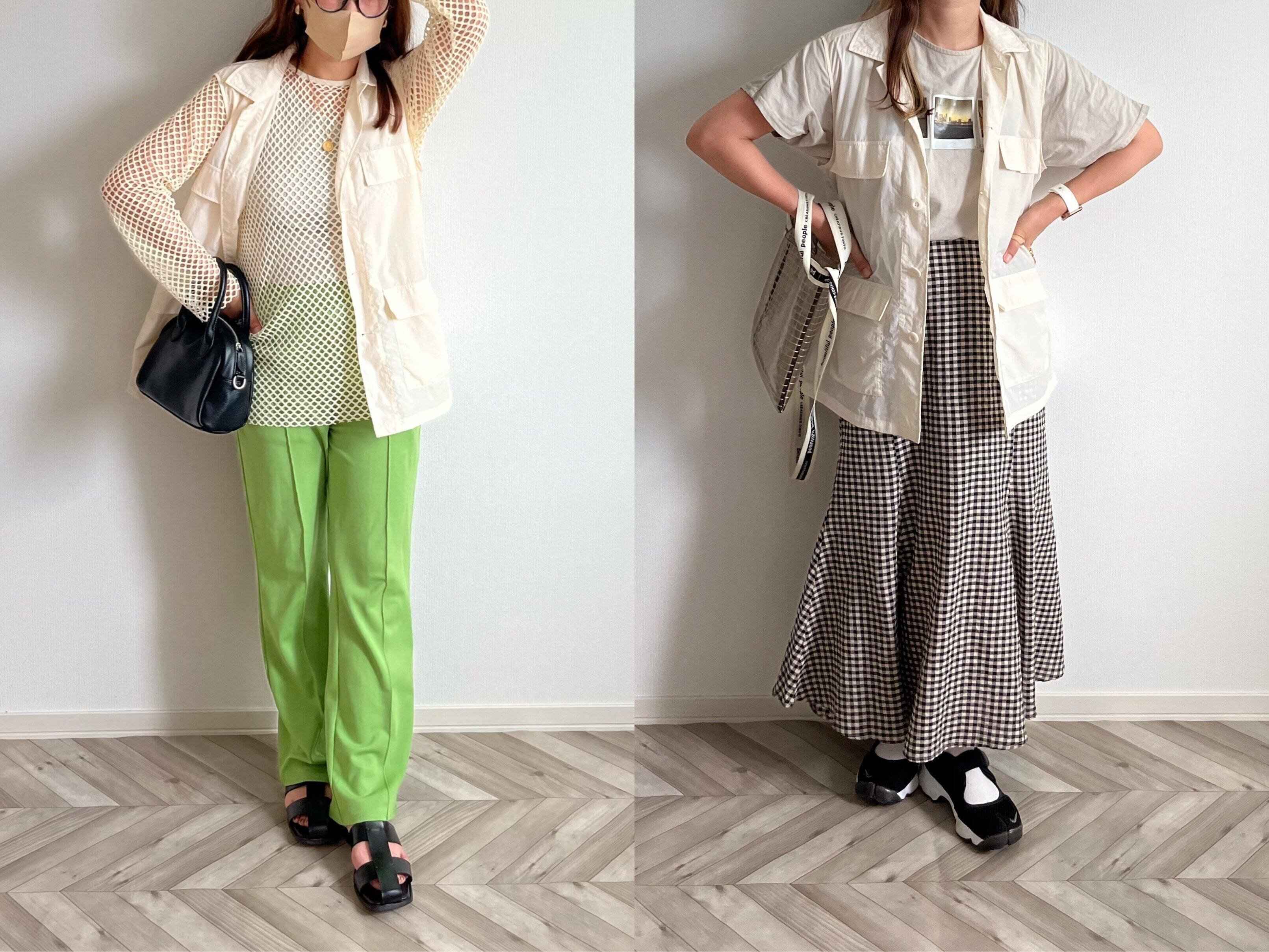 一見ミリタリーベストって合わせにくそうなイメージだったんですが、意外にいろんな系統のコーデにも合います。