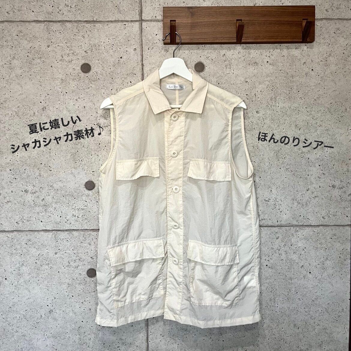 ジレもベストも、まだまだトレンドアイテムですよね。そこで今回はしまむらで見つけた、ほんのりシアーが今っぽい、白色のミリタリーベストのご紹介です。