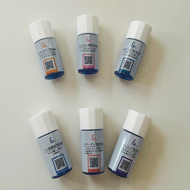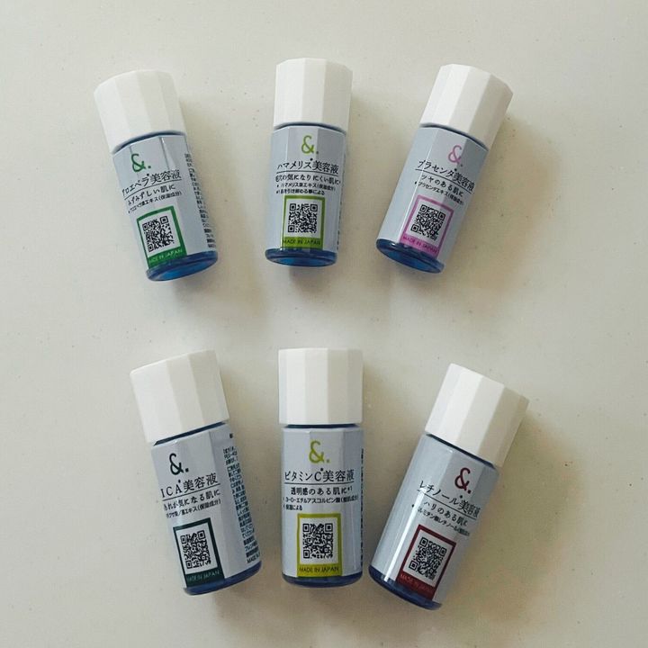 こちらの美容液のボトルには、すべてパッケージにQRコードがついています。スマホでQRコードを読み取ると専用サイトが表示されるので、画面に従って4つの肌質問に答えるだけで、自分に合った美容成分をチョイスしてくれる機能付き!