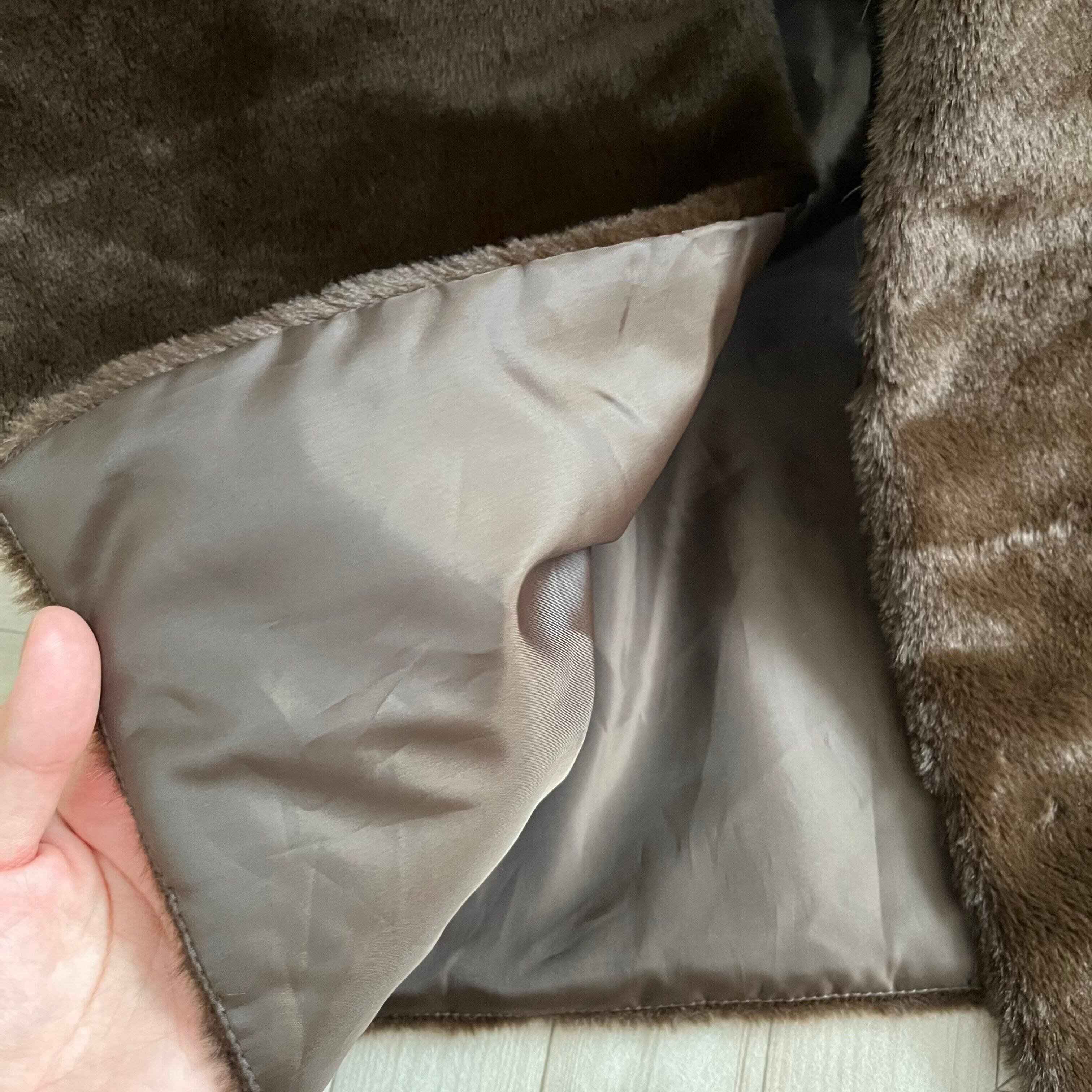 こちらがSNSで話題のフェイクファーベストです。