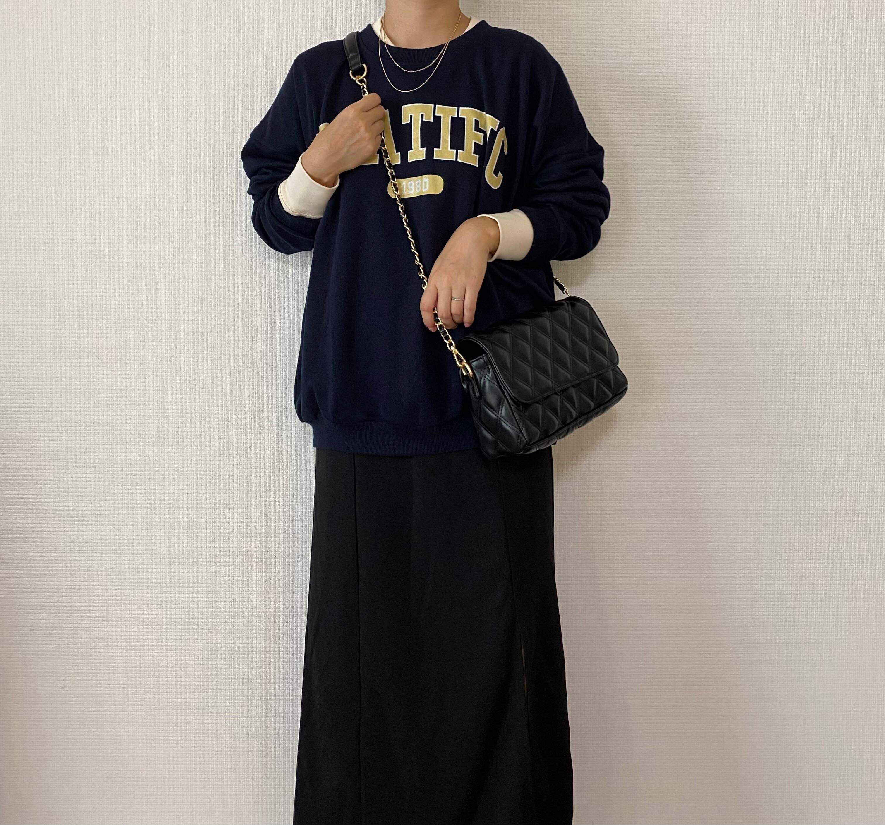 ロゴスウェットは合わせ方によっては子供っぽくなってしまうアイテム。小物で女性らしさや大人っぽさをプラスするとバランスも取りやすいですね!
