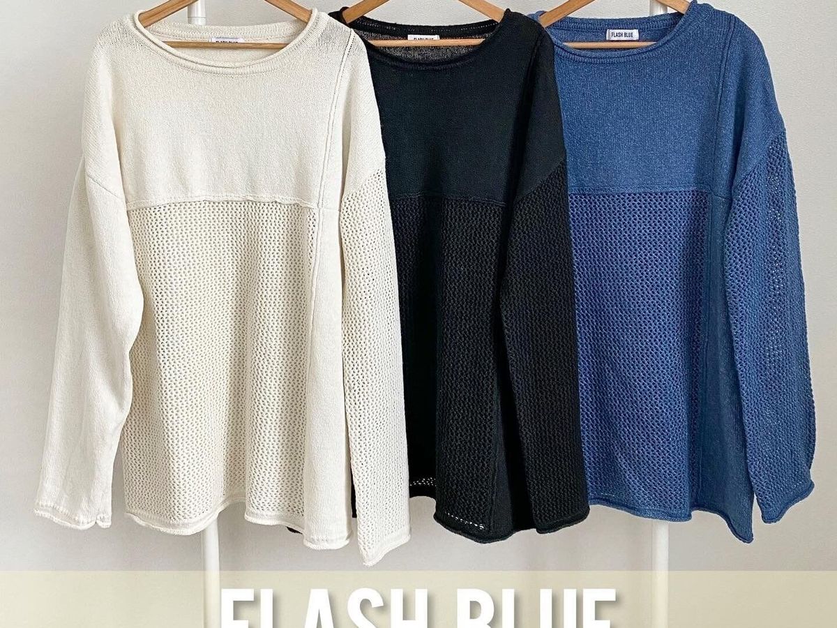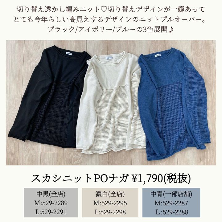 しまむらで発売中の切り替えデザインがかわいい透かし編みニット♪