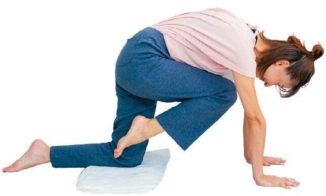 (1)四つんばいになり、片方の脚をなるべく高く上げる。