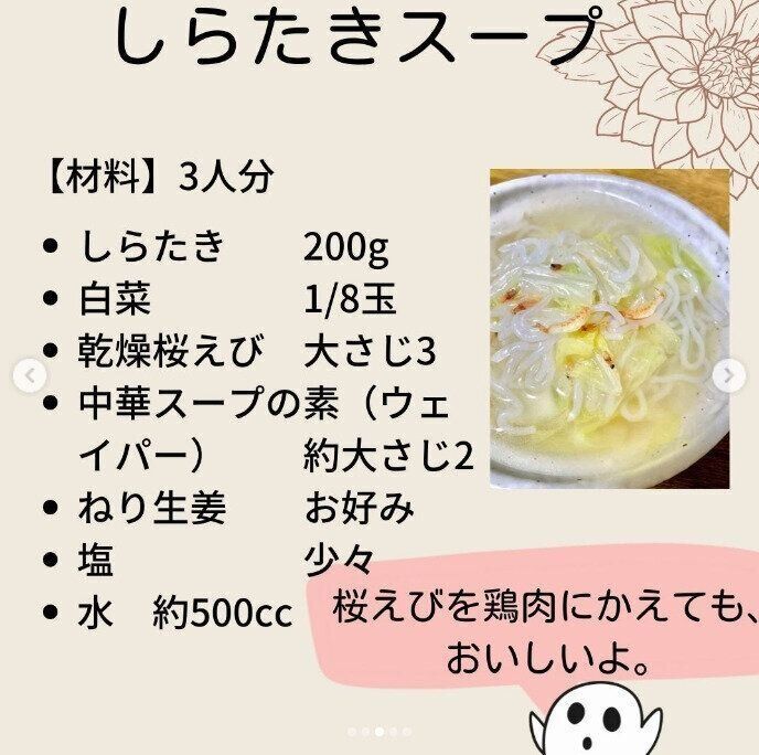 ダイエットに向いていると言われる春雨としらたき。同じ食べるなら、よりダイエットに向いている食材がいいと、bmajo_diet_rooさんは栄養成分を調査。結果、カロリー控えめ、糖質も低い「しらたき」に軍配があがりました。そこで、春雨スープならぬ「しらたきスープ」をご紹介です。