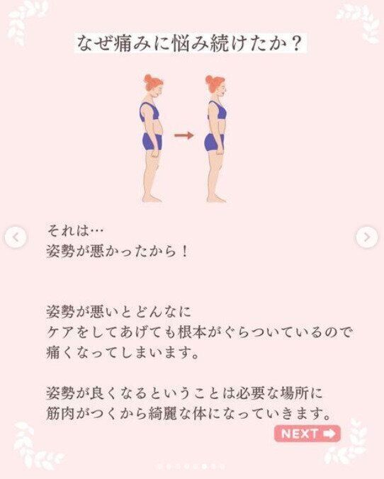 なぜ不調が続いたのか?じつはその原因は「姿勢が悪かった」からだったのです。マッサージなどで、そのときだけ体の痛みをとったとしても根本からの治療ではないため、また痛みが出てしまう。姿勢がよくなるということは、必要な場所に筋肉がつき、結果としてきれいな体つきになっていくのです。momo.koriitamikaizendietさんも、体調を整えていくことが、「痩せる1番の近道」だと言います。ダイエットをするなら、まずは姿勢を意識することから始めてみましょう。