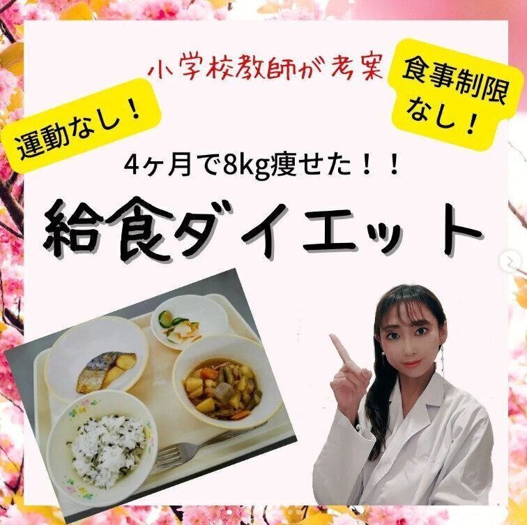 yaya.t1122さんがおすすめする「給食ダイエット」。長年、学校の先生として給食を食べ続けてきたyaya.t1122さんは、そのすばらしさに気づき、日々の献立に取り入れることでダイエットに大成功!給食の献立は、ヘルシー、おいしい、そして満足感もあるから、無理なく続けることができたと言います。その後は、運動習慣なども取り入れることで-25kgという大減量に成功しました。現在は、これらの経験をいかしてダイエットのインストラクターとして活動中。SNSには、ダイエット情報だけでなく、おいしそうな給食献立が数多くアップされていますよ。ぜひ参考にしてみてくださいね!