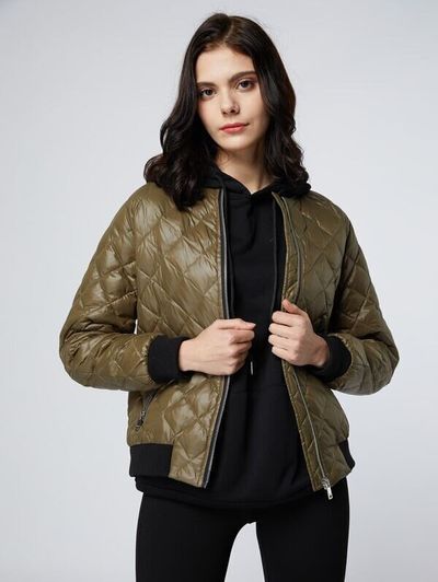 落ち着いたカラーでおしゃれなデザインのキルティングダウンコート。薄めに作られているので、インナーダウンとして着ることも可能。ブラックのパンツやトップスと合わせれば、シックに着こなすことができますね。