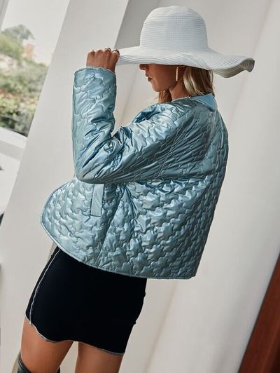 光沢のあるブルーがおしゃれ!フロントボタンのダウンジャケット