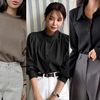 光沢のあるブルーがおしゃれなダウンジャケット。フロントボタンで薄手の生地なので、インナーダウンとして着ることも可能です。黒のボトムスやトップスとの相性もよさそうですね。