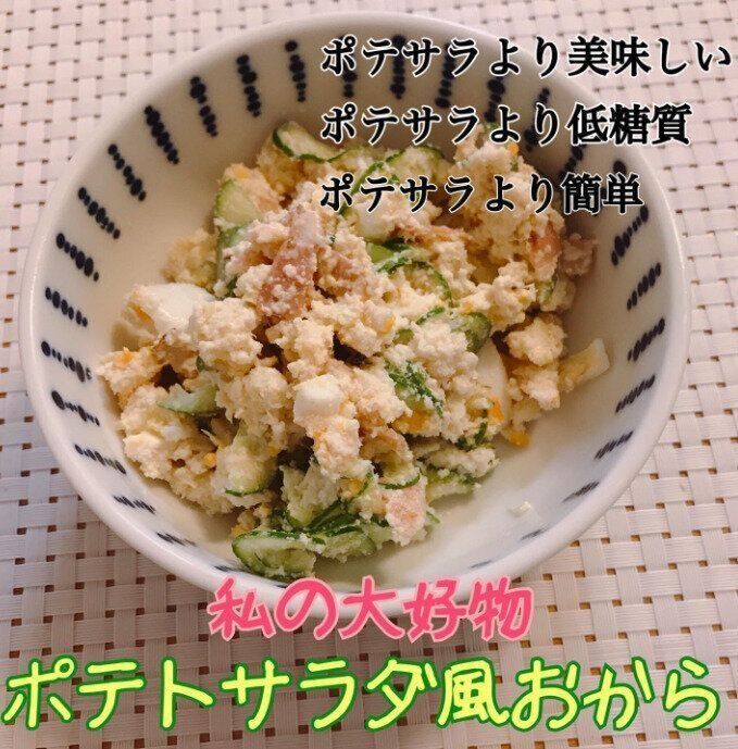 最後は、「ポテトサラダよりもおいしい!」と太鼓判を押す「ポテトサラダ風おから」です。つくりかたは驚くほど簡単。生おから、ベーコン、きゅうり、クリームチーズ、ゆで卵を混ぜて、塩胡椒とマヨネーズで和えるだけ。ポテトサラダより簡単で低糖質。そして何よりおいしいのだそう!