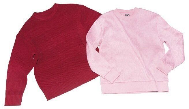 (左から)「SOLOTEX(R)使用アゼプルオーバー」(レッド)¥1,500、「ウォームワッフルクルーネック」(ダルピンク)¥1,500