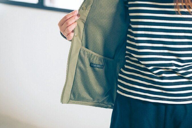 中綿のような起毛メッシュを裏地に使用。撥水効果も。