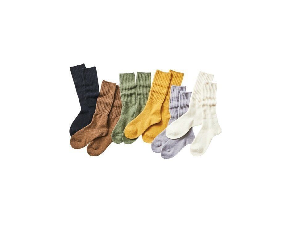 「裏シャギーワンピース」(ベージュ)¥1,900、「レディースルームソックス」(アースグリーン)¥580、「LadiesMerino Inside ヘッドバンド」¥580
