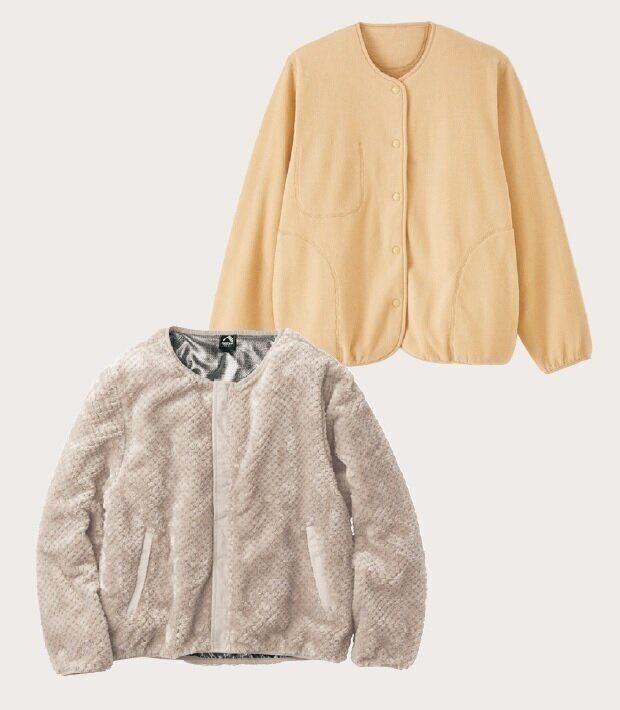 (上から)「マイクロフリースカーデガン」(ベージュ)¥1,280、「ダイヤフリースカーデガン」(ダイヤグレージュ)¥1,900