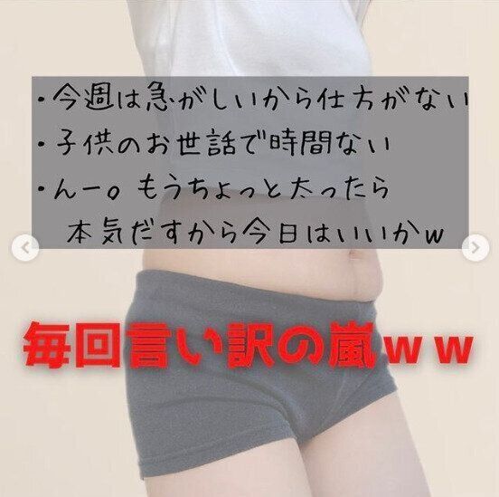 tuna.diet153さんもそうでした。「今週はいそがしいから」「子どものお世話で時間がない」「もうちょっと太ったら本気をだそう」と、毎回「言い訳の嵐」だったといいます。産後ママならだれにでもある悩みを「言い訳だった」と反省し、そこから一念発起したtuna.diet153さん。飽きやすい自分の性格を見極めたうえで、「無理なく続ける方法」を模索したのです。