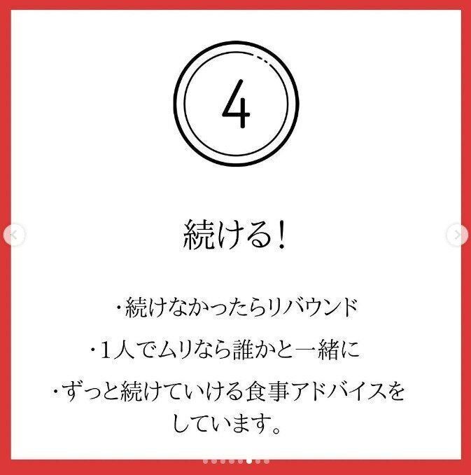 とにかく続けることがダイエットの基本。続かなければリバウンドします、と、bona_kana.0201さんはいいます。無理なく続けられる工夫をしていきましょう。ひとりで無理ならば、プロの手を借りてみるのもいいですね。