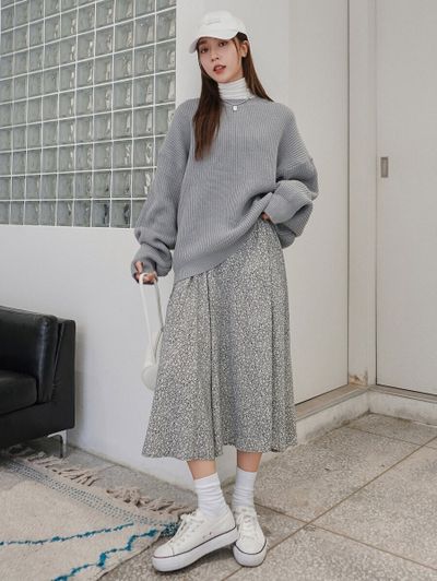大きめセーターでゆるっと着る