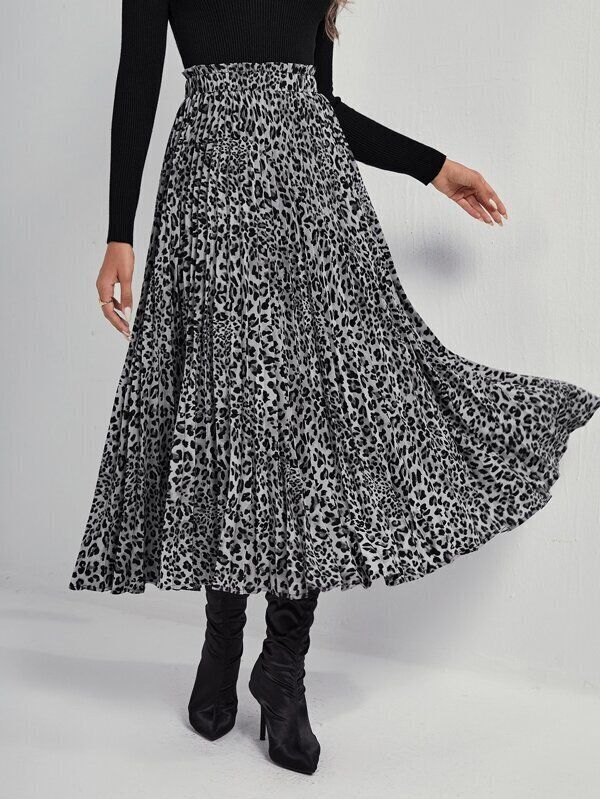 モノトーンのアニマルプリントが大人っぽ印象のプリーツスカート。スカート自体の存在感があるので、トップスやブーツはワンカラーでブラックなどをチョイスするのがよいでしょう。