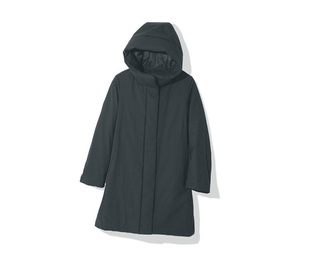 お仕事にも使える1着。上半身は暖かなダウンを使用し、動きがある腰から下、フード、袖は羽根抜けしない中綿を使用。(ブラック、ブラウン、ネイビー・全3色)/ユニクロ