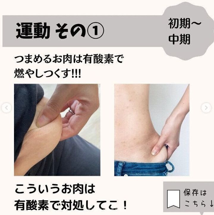 ダイエット初期から中期は、有酸素運動で体を燃やしていきましょう。トレーニング動画などを参考にしてみるのもいいですね。そして、ダイエットを始めてしばらくたったころに、筋トレを取り入れていきましょう。大きな筋肉から鍛えていくと効果はよりアップするのだそう!