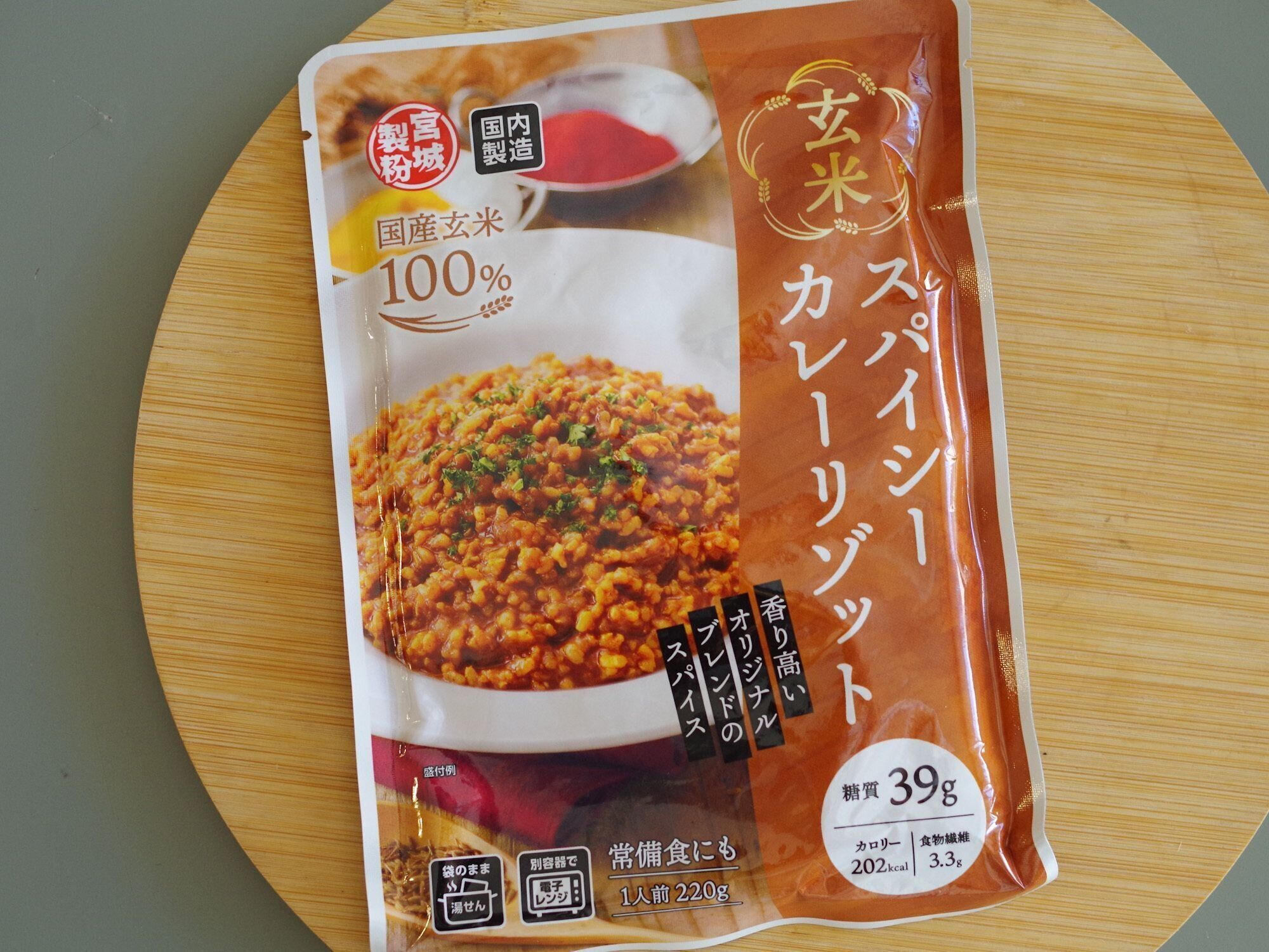 こちらが業務スーパーでリピート買いしている「玄米トマトリゾット」「玄米スパイシーカレーリゾット」です。両方とも3袋入りで常温で保存できます。価格は、両方とも240円です。1袋当たりに換算すると、80円。なかなかコスパがいい!