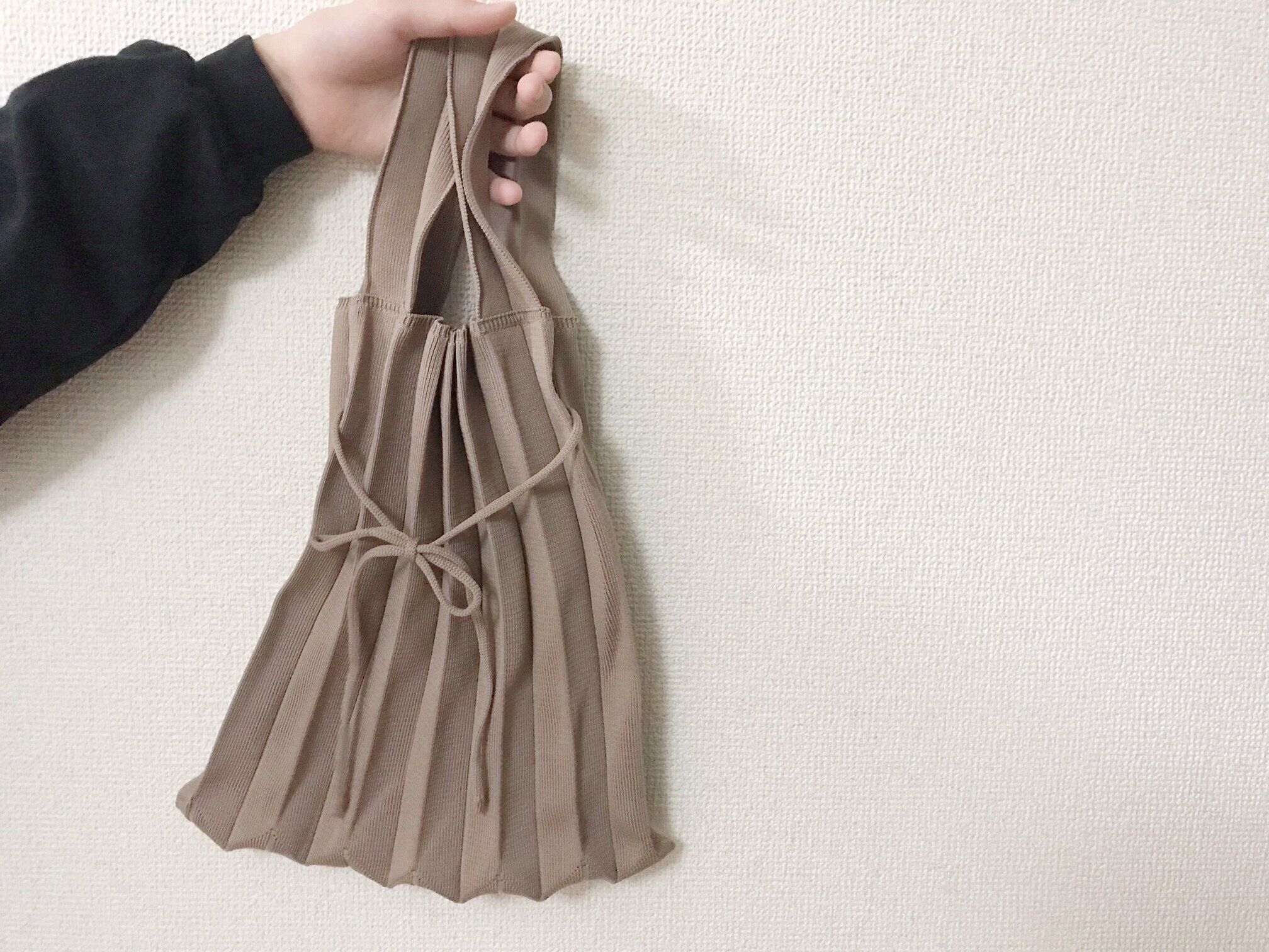 メインバッグとして使うのももちろんおしゃれなのですが、実はサブバッグとしても便利。プリーツに沿って折りたためばコンパクトに収納できるので持ち運びも楽ちんです。自宅でもバッグの収納場所が最小限で済むのもうれしいですよね。おしゃれなだけでなく機能的なプリーツニットバッグは、使ってみるとより一層人気の理由を理解できます。