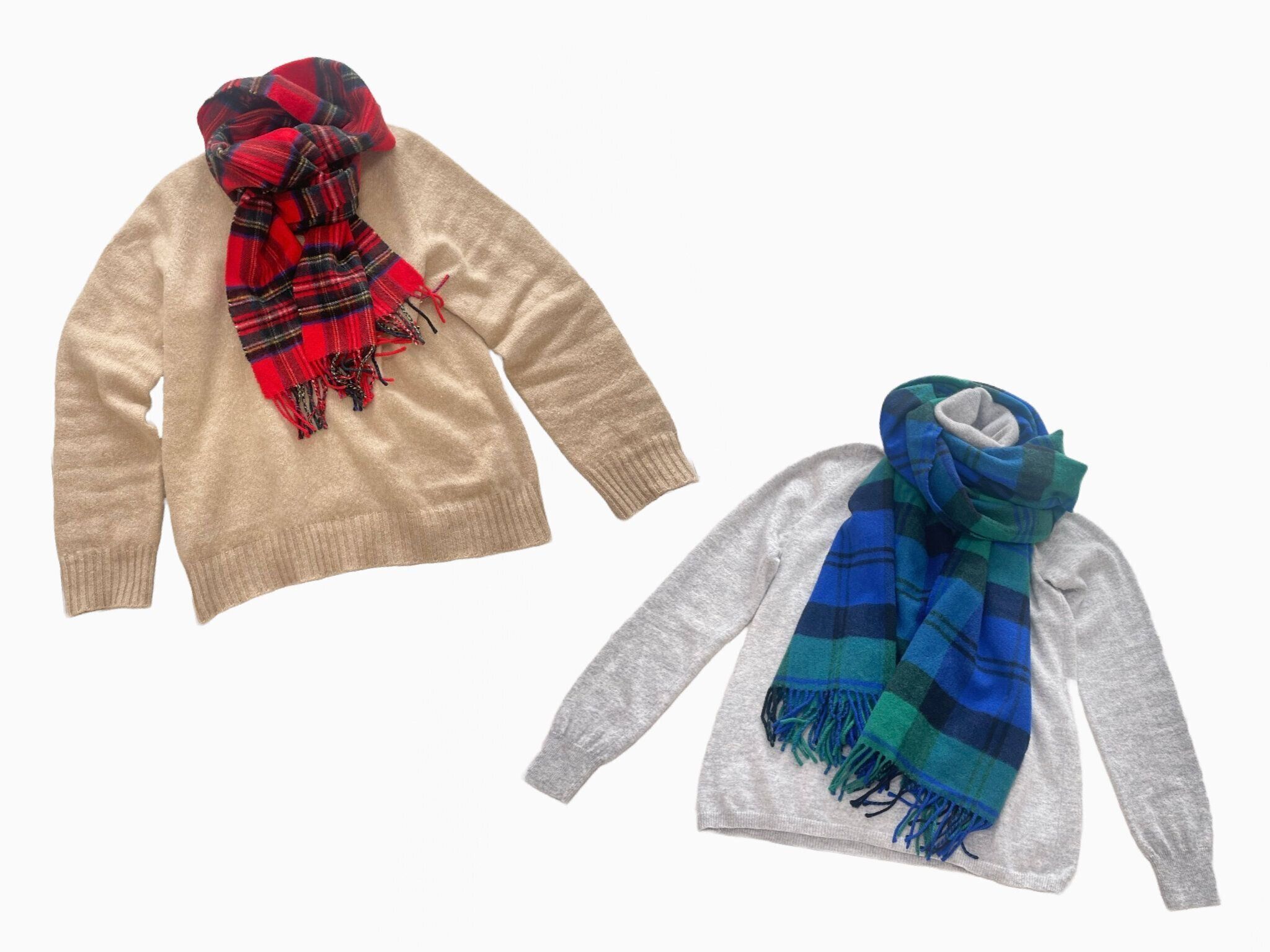 そんなとき、雑誌やSNSでチェックのストールを合わせているスタイリングが気になり始めました。