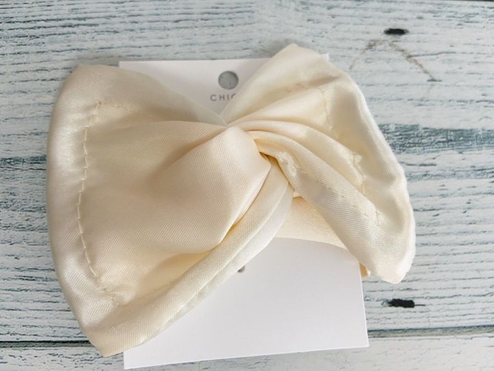 シアーサテンデフトバン(330円)はシアーラメデフトバンよりは透け感がない生地を使用しているデフトバン。きれいめファッションにはもちろん、カジュアルファッションとも相性のよいデフトバンです。カラーは筆者が購入したアイボリーのほかに、ベージュ・カーキ・ピンクの全4種類展開で発売されています。シーズンレスで使える印象。