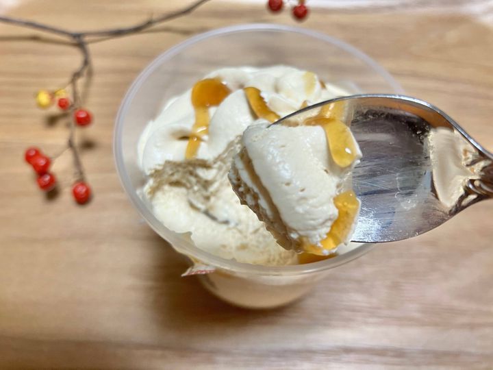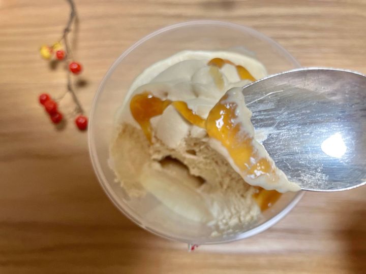 甘すぎず、でもしっかりとみたらし団子のタレの味がして美味しいです。プリンの上に沢山乗っていてもくどくありません。