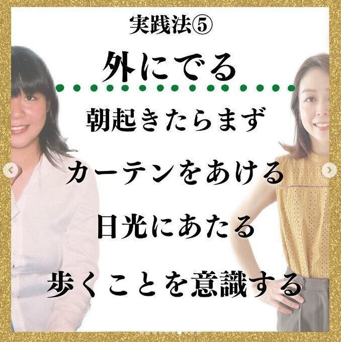 朝起きたらまずはカーテンを開けて、日光をあびましょう!そして、日々の生活のなかで歩くことを意識してみましょう。