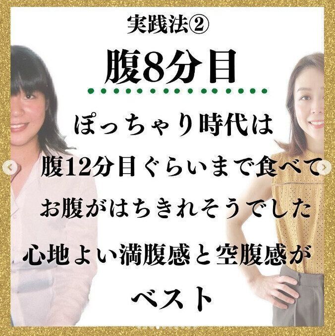 上の写真、ビフォアーの写真をよくみると、立派な三段腹が…。じつは、tabeyase_diet_yukoさんが食生活を改善し、痩せ始めたときにまず感じた変化はお腹だったといいます。なかなかお腹のお肉が落ちないという人は、ダイエットの方法があっていないのかもしれません。まずは、お腹から変化を感じてみませんか?その方法を教えてもらいましょう。