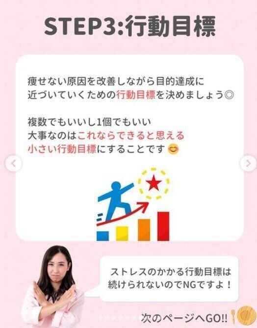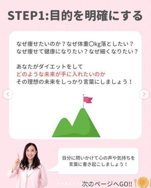 ダイエットを始めるための大切な3ステップを教えてもらいました。「なんとなく痩せたい、でダイエットを始めて実際に痩せた人を見たことがありません」と、長年ダイエット指導にたずさわっているyukiiiii_dietさんはいいます。目標設定があいまいで、自分の現状を把握しないままスタートしても、1日の体重の変化にメンタルが左右され、次第にモチベーションは低下していくのだとか。
