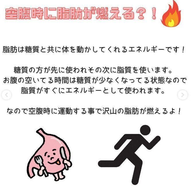 そもそも脂肪は、糖質とともに体を動かしてくれるエネルギー。糖質が先に使われ、その次に脂肪を使うのだそう。お腹のすいている時間は、糖質が少なくなっている状態なので、脂質がすぐにエネルギーとして使われるのです。だから、お腹がグーグーなりだしたときは、体脂肪をエネルギーとして使ってくれるサイン。こんなときに運動を組み合わせれば、たくさんの脂肪が燃えてくれるというのです。たった15分でもOK。今がチャンスとテンションをあげて体を動かしてみましょう!