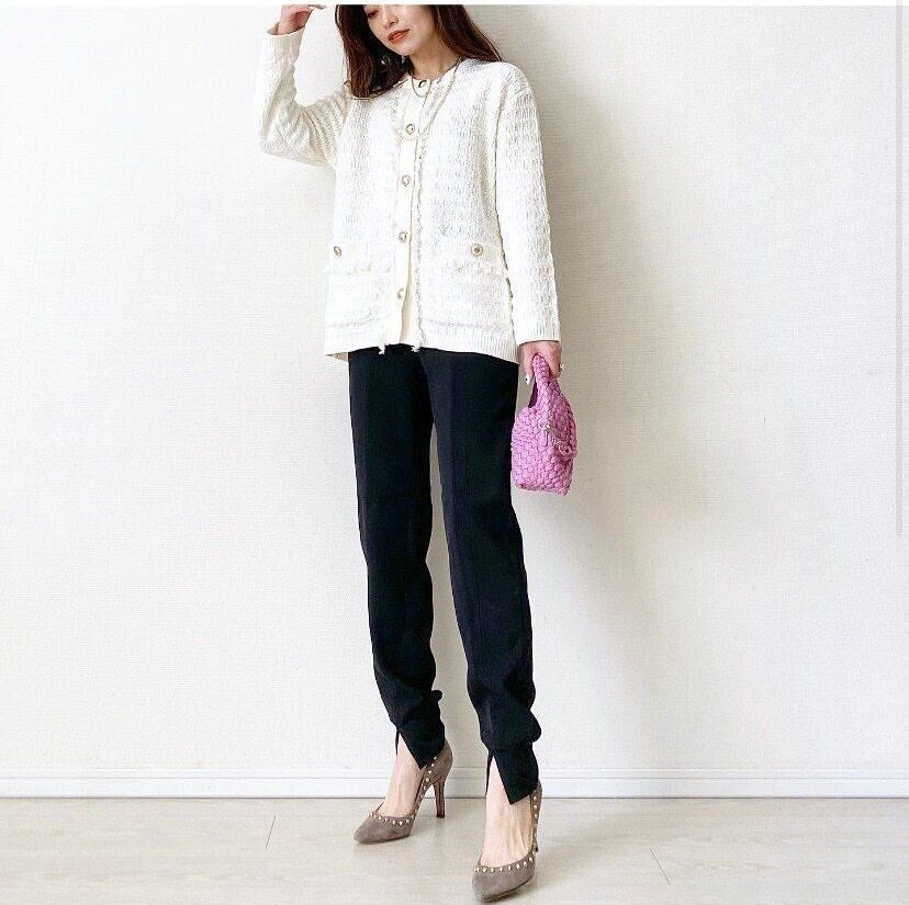 着回し力を重視するならブラックがおすすめですが、コーディネートにいち早く季節感を取り入れたい人は「ナチュラル」がおすすめです。ナチュラルは真っ白なホワイトではなくベージュとホワイトの間のような印象のカラー。普段はホワイト系のボトムスを履かない人でも抵抗なく履きこなすことが出来るはず!