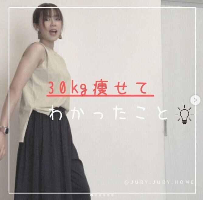 美しい姿からは想像できませんが、以前は、「万年ダイエッター」だっというjury.jury.homeさん。ダイエットをして自分と向き合ったときに、なぜ自分が太ってしまったのかということを考えたといいます。そこでみえてきたのは、自身のストレスでした。ストレスから、暴飲暴食や寝不足などにつながっていたのです。そしてそのストレスを解消したとき、食欲は落ち着き、熟睡もできるようになり、元気になると運動もしたくなったのだそう!jury.jury.homeさんにとって、ダイエット成功の大きな秘訣は、「心を健康にたもつこと」だったのです。