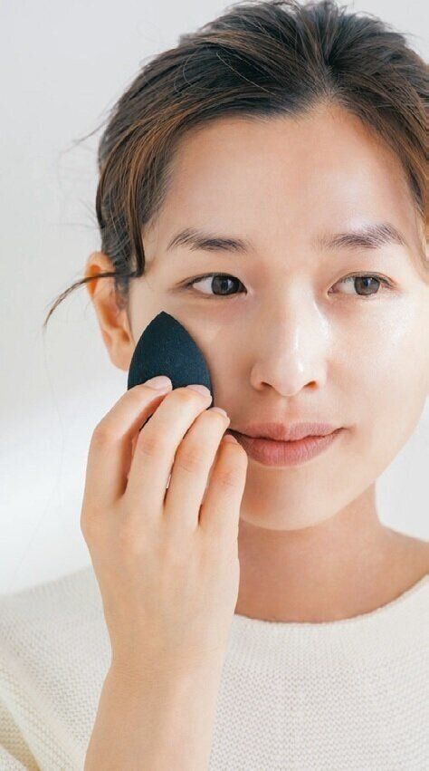 2 【乾燥肌】保湿力のあるクッションファンデをスポンジで塗る
