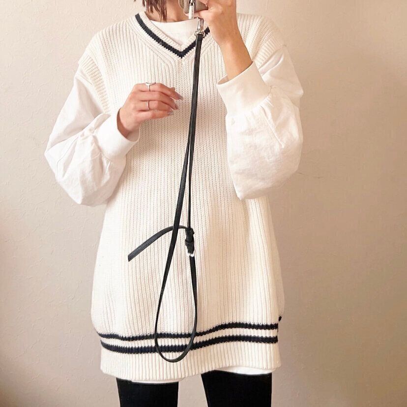 ニットベストに「ミニ裏毛オーバーサイズT」を合わせることで、今年っぽいほどよく緩い感じを演出してくれます。ミニ裏毛オーバーサイズTのホワイトはシャツやブラウスの代わりに使うことで、ニットベストのようにさまざまなアイテムを今年っぽくよみがえらせてくれるおすすめカラーです。