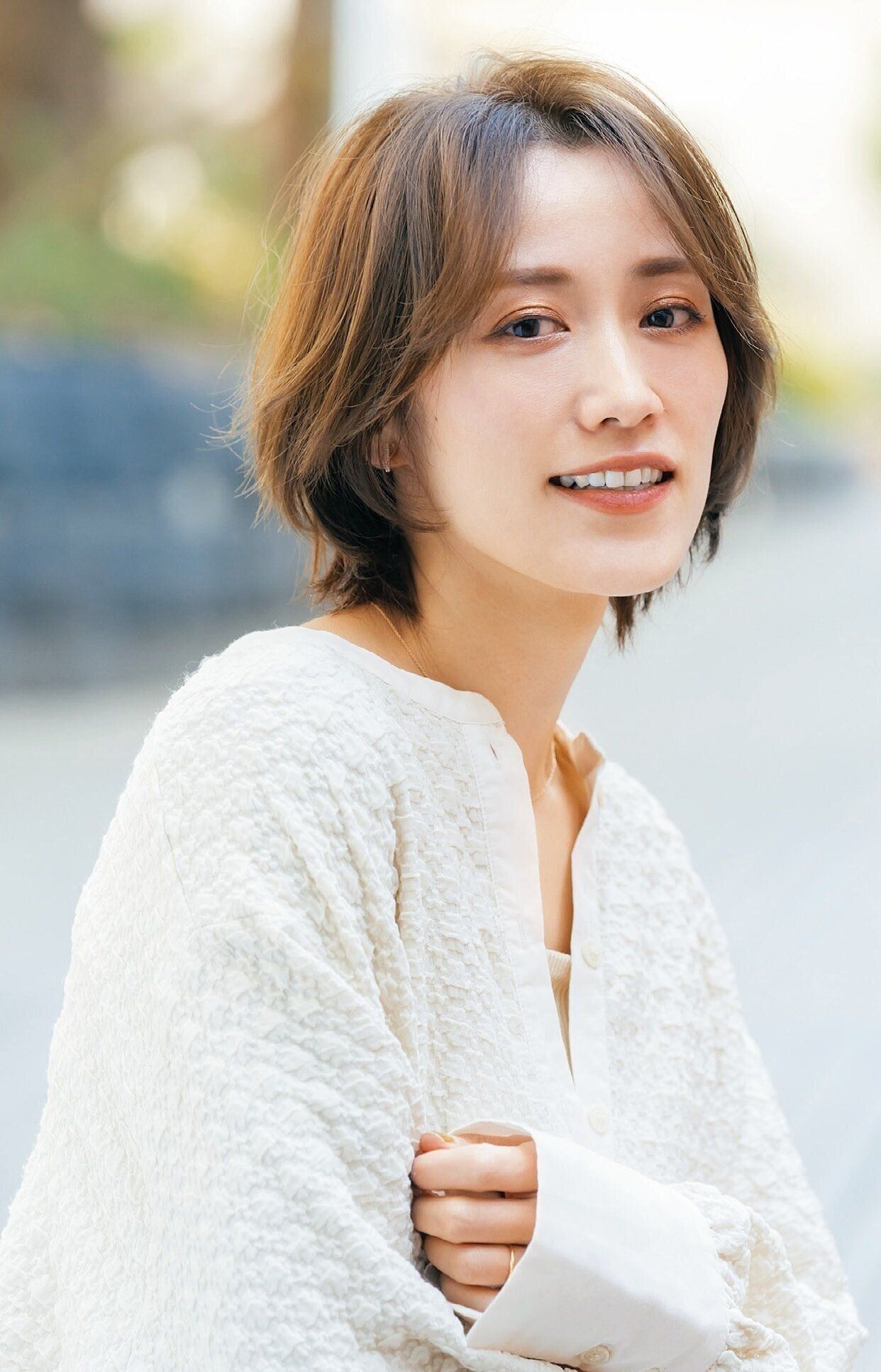 「以前はロングヘアだったけど、アラフォーになってからショートに。スタイリングが楽ちんで満足です」。